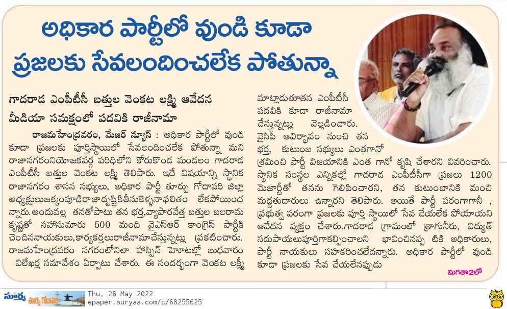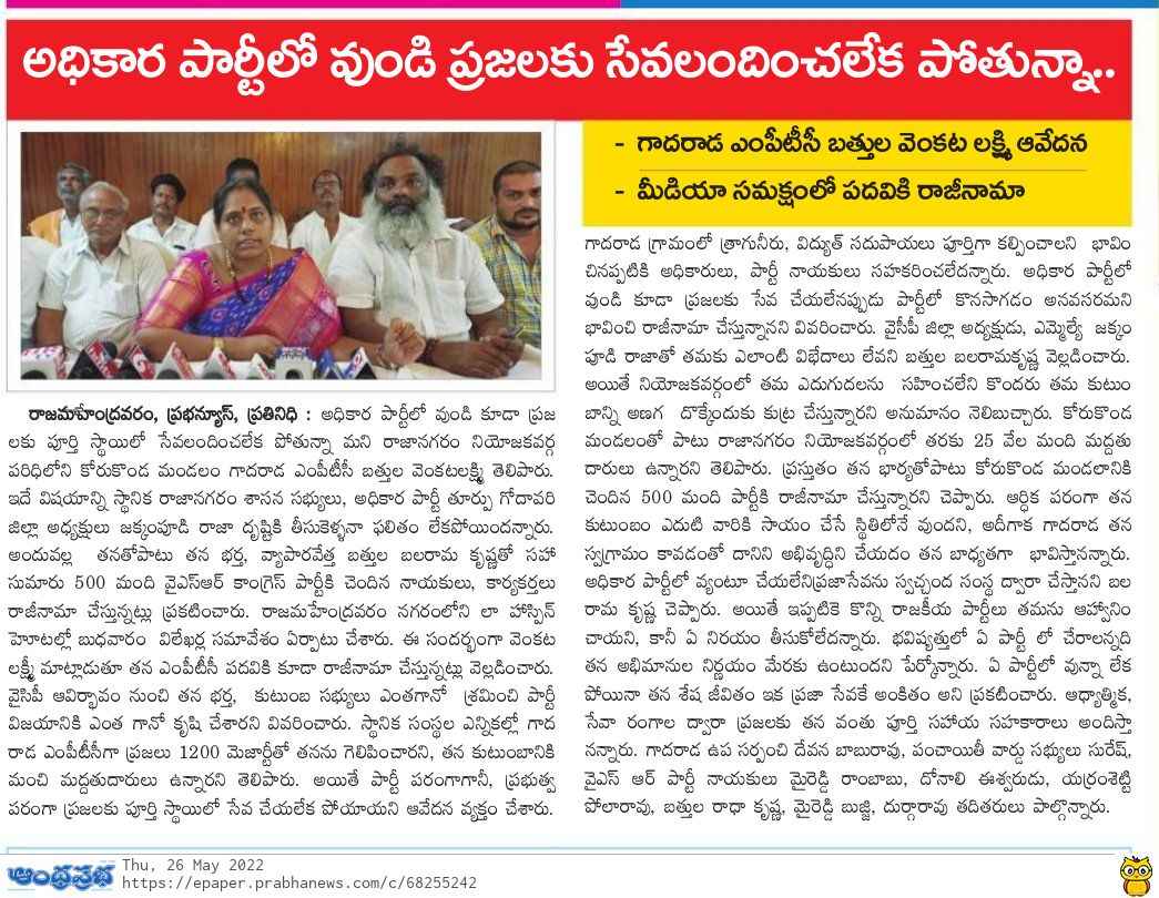 యం.పి.టీ.సీ. పదవికి రాజీనామా ప్రెస్ మీట్